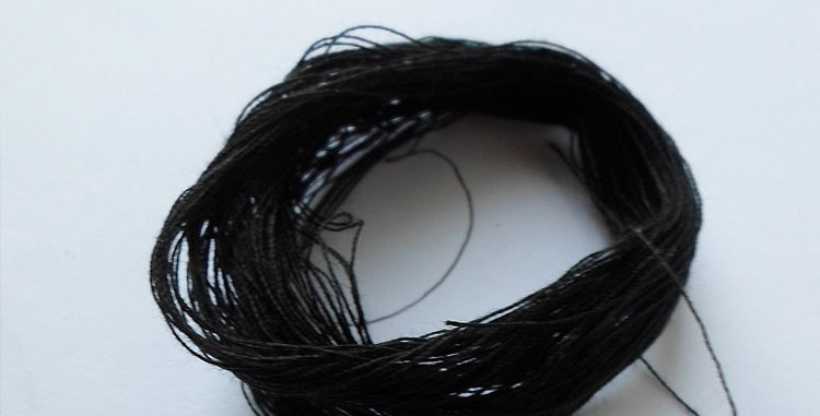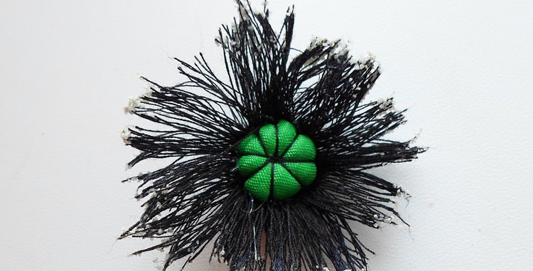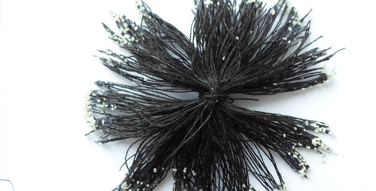 Для того чтобы мак выглядел органично ему нужно сделать серединку, которая состоит из маковой коробочки и тычинок. Сначала мы сделаем тычинки. Для этого возьмем черные нитки и намотаем около ста раз на пальцы.