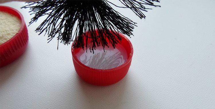Возьмем коробочку, нанесем на нее немного клея и приклеим к ней тычинки.