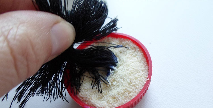 Теперь возьмем эту заготовку и аккуратно начнем макать края ниток сначала в клей ПВА, а затем в манку. У нас получились такие красивые тычинки. Отлаживаем их для высыхания клея.