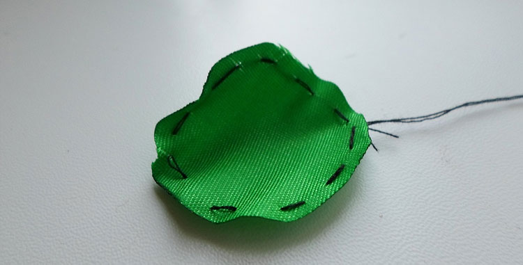 После этого фиксируем нитку узелком и прошиваем нашу заготовку со всех сторон, чтобы получилась маковая коробочка.