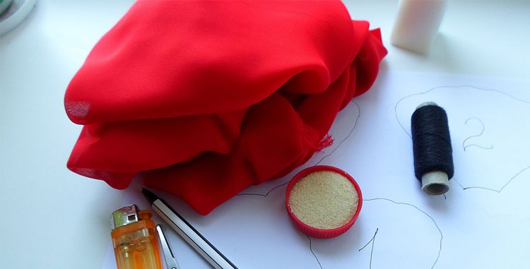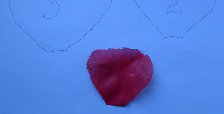 Ложим ткань на лист бумаги, обводим по контуру трафарета и вырезаем.