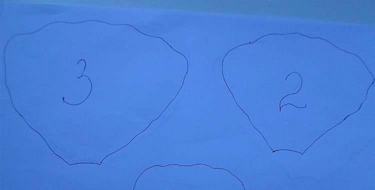 Берем лист бумаги и рисуем на нем трафареты для лепестков. Для мака нам понадобятся лепестки трех разных размеров.