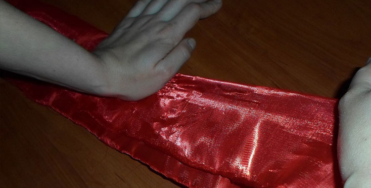 Прежде чем приступить к изготовлению цветка нам необходимо нажелатинить ткань. Чтобы это сделать, сначала нужно приготовить раствор желатина. Для этого мы берем столовую ложку желатина, заливаем ее стаканом холодной воды и оставляем примерно на сорок минут. После этого берем разбухший желатин и нагреваем его до полного растворения. Очень важно чтобы смесь не закипела, иначе все свойства желатина исчезнут. Когда раствор немного остынет, погружаем в него отрезок ткани и хорошо промачиваем. Достаем ткань из желатина и слегка отжимаем, но не выкручиваем. Отрезок ткани нужно повесить за одну сторону для просыхания. Повешенную ткань можно еще раз расправить руками. Чтобы убрать излишки желатина. Через некоторое время ткань высохнет и станет более жесткой, напоминая бумагу.