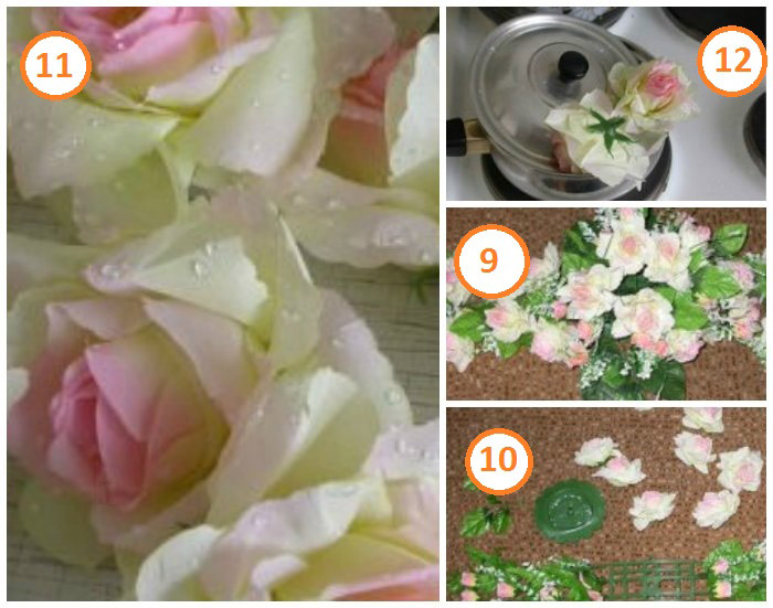 - Осталось отпарить искусственные цветы, разгладить неровности, чтобы украсить ими основу-держатель колец (смотрите фото ниже).